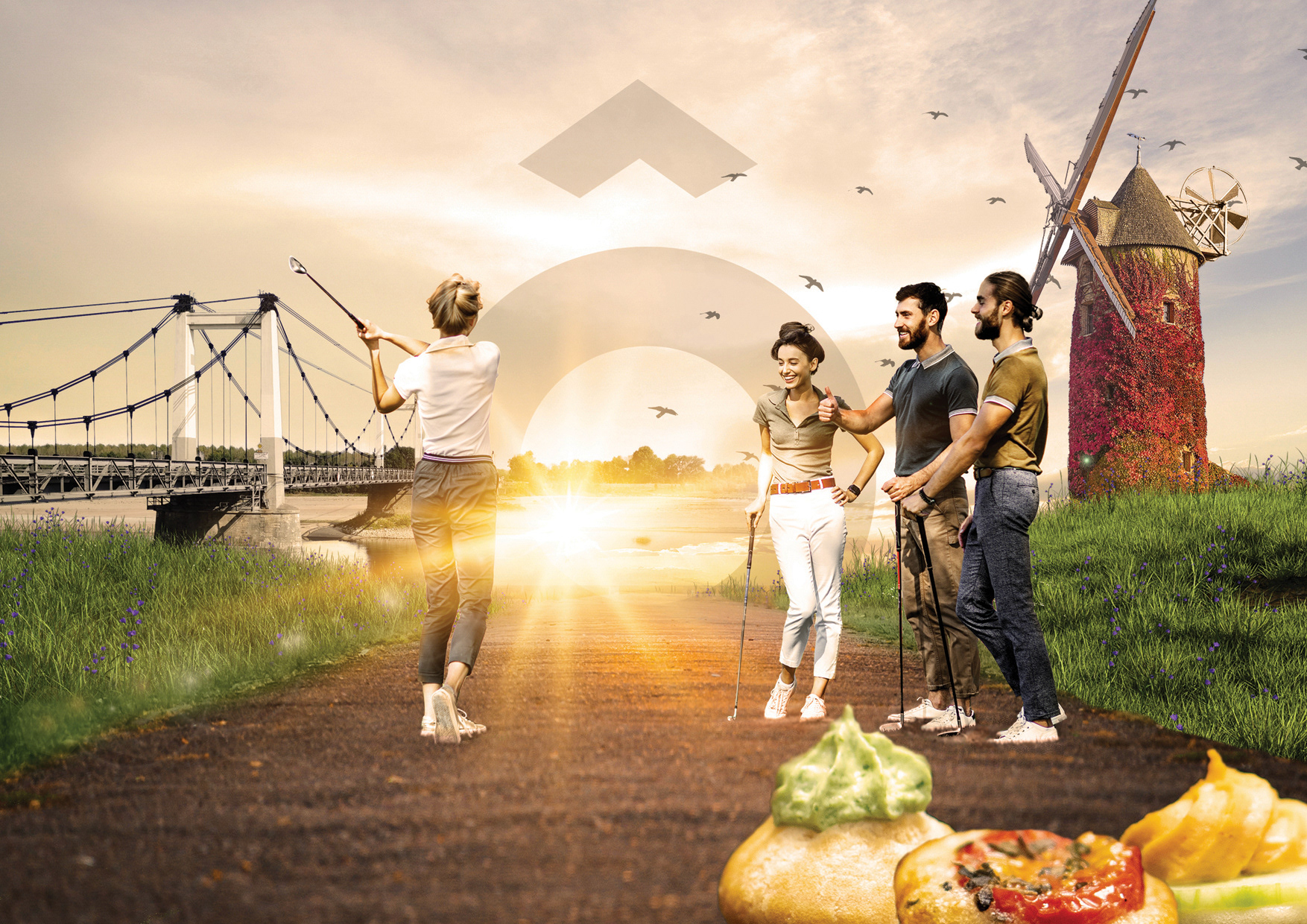 Création graphique et mise en page d'une brochure de tourisme d'affaires pour l'Office de Tourisme Ôsez Mauges. Illustration sous forme de montage photo pour la couverture.