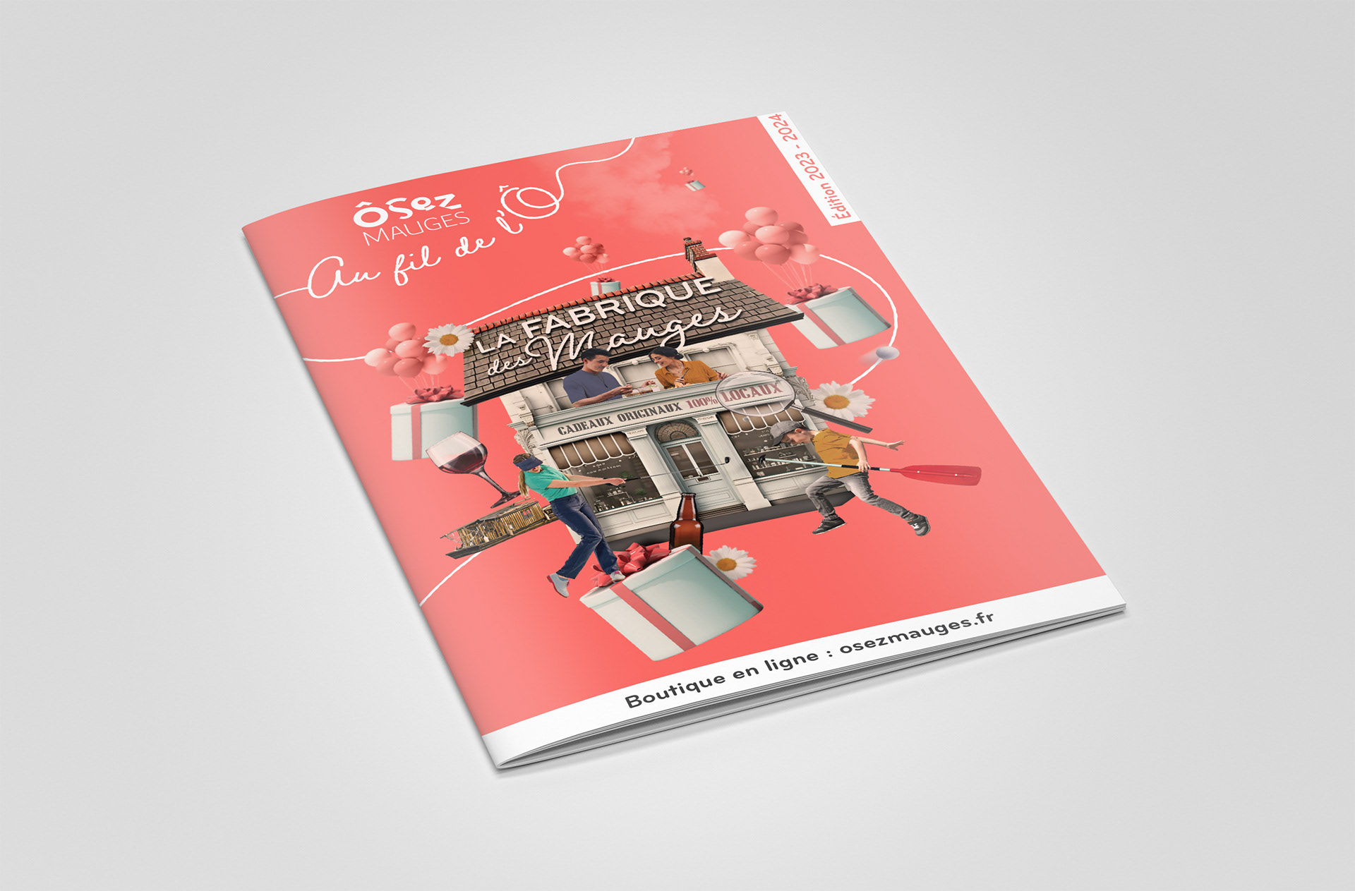 Pour l’Office de Tourisme Ôsez Mauges, la conception de ce catalogue cadeau a été pensée comme une vitrine chaleureuse et élégante des richesses du territoire. À travers une mise en page structurée et une direction graphique soignée, le support valorise l'offre locale tout en captivant le regard dès la couverture grâce à un montage photographique créatif et évocateur. Ce projet marie harmonieusement clarté de l'information et poésie visuelle, transformant un simple inventaire de produits en une véritable invitation à offrir et à découvrir les trésors des Mauges.