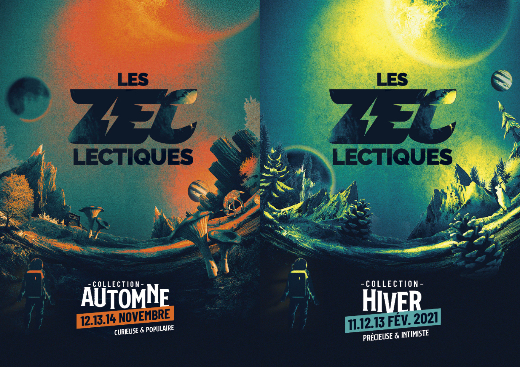 Création de l'identité visuelle des 4 collections 2020-2021 du festival des Z'éclectiques. Accompagnent graphique sur l'ensemble des supports de communication du festival.