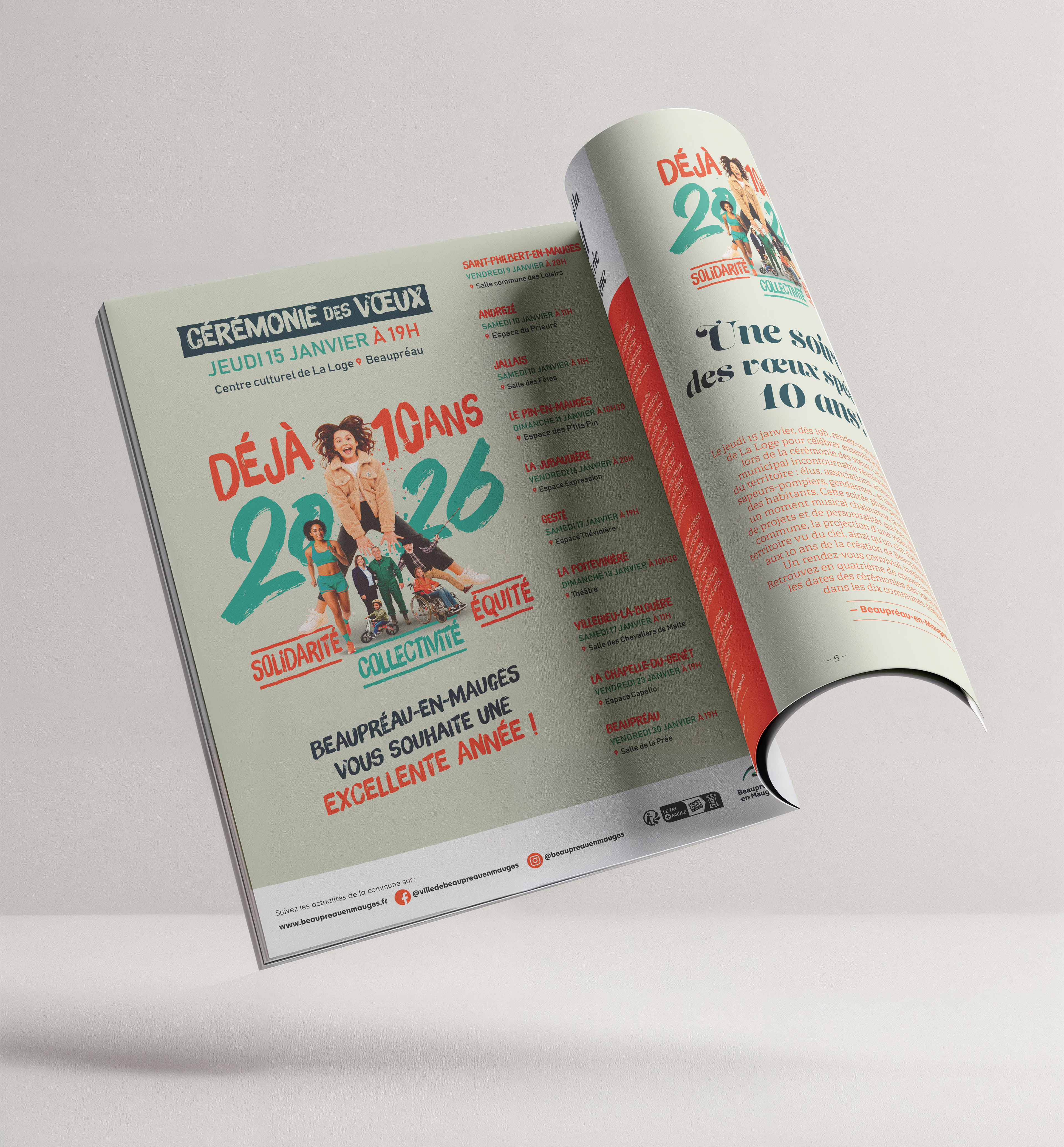 Création graphique de l'identité visuelle des voeux 2026 de la ville de Beaupréau en Mauges : graphisme et illustration.